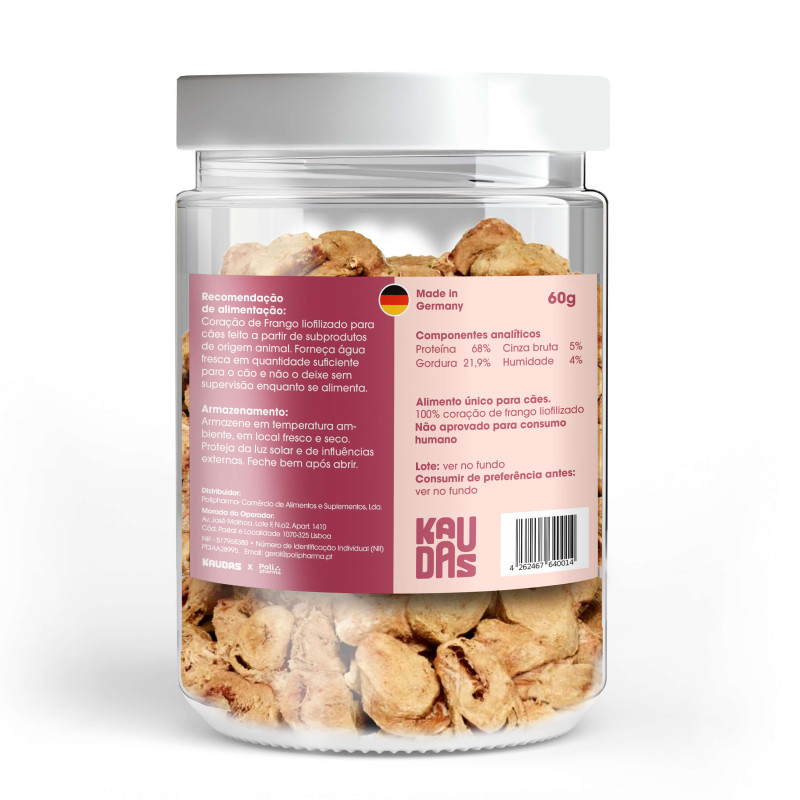 Kaudas – Snacks Liofilizados para Cão – Corações de Frango 60 gr