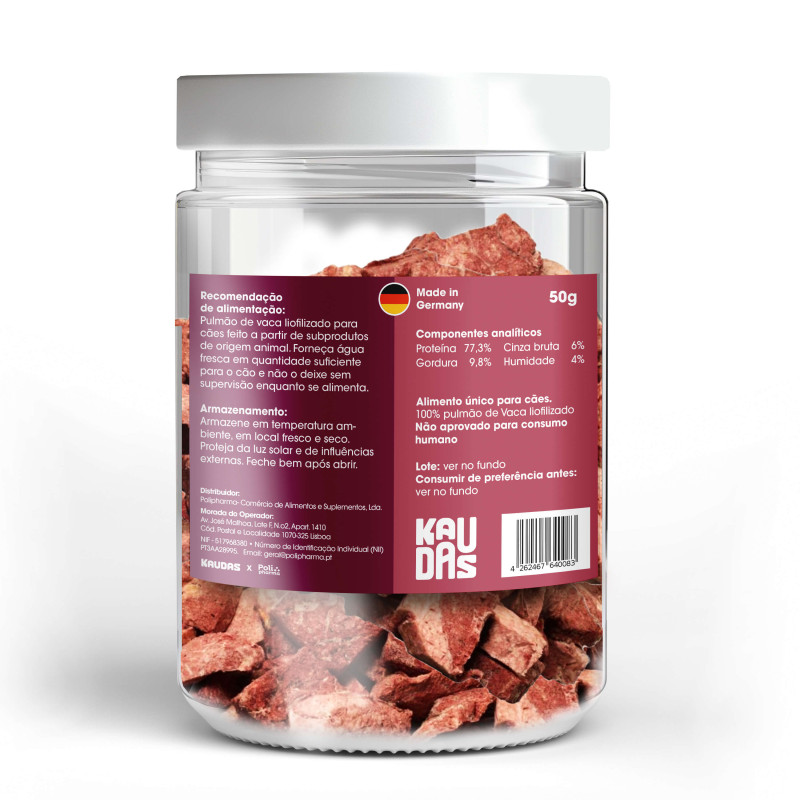 Kaudas – Snacks Liofilizados para Cão – Pulmão de Vaca 50 gr